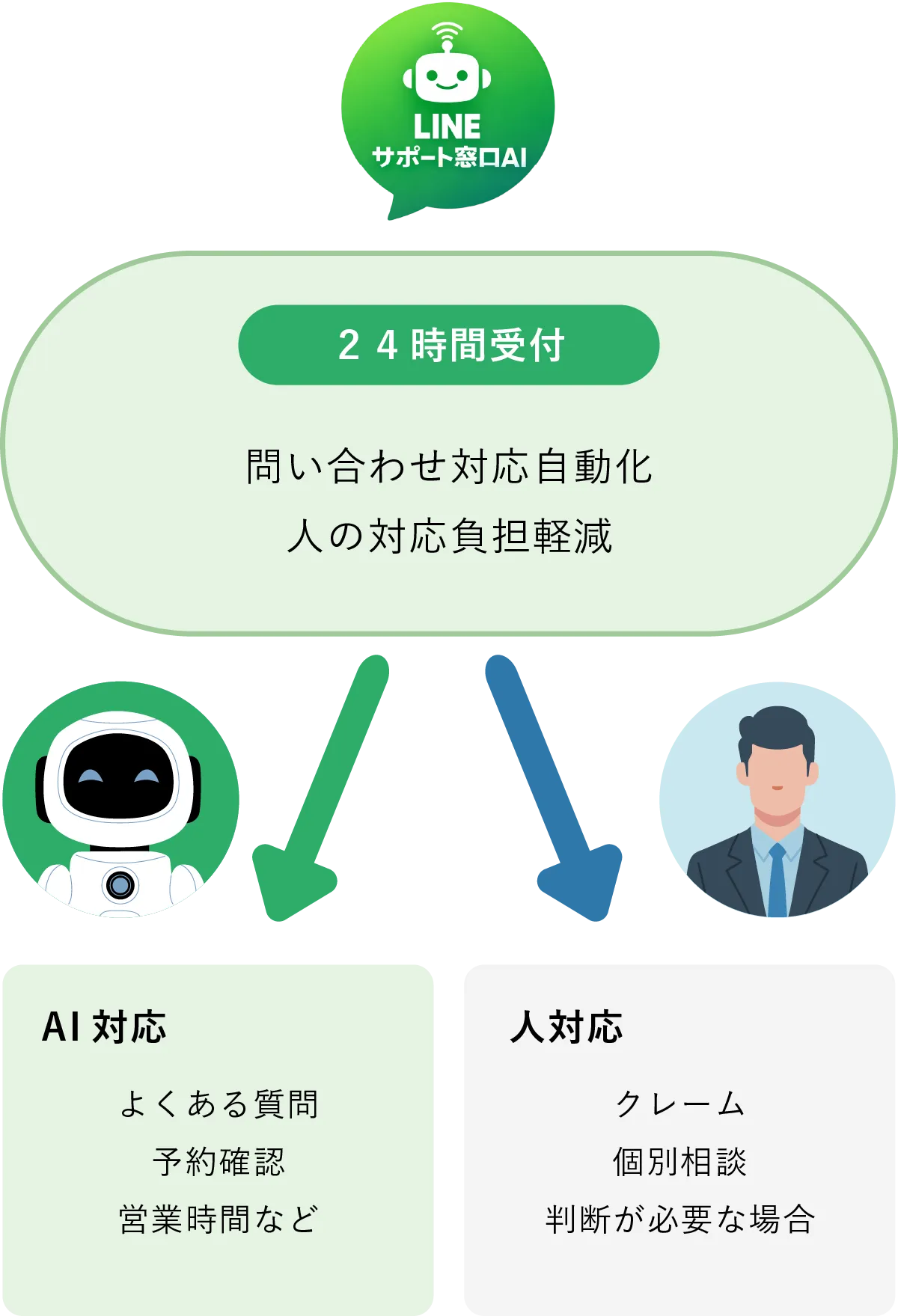 登録された知識の範囲内で回答し、判断・交渉・クレームが必要な場合は必ず人へ引き継ぎます。
